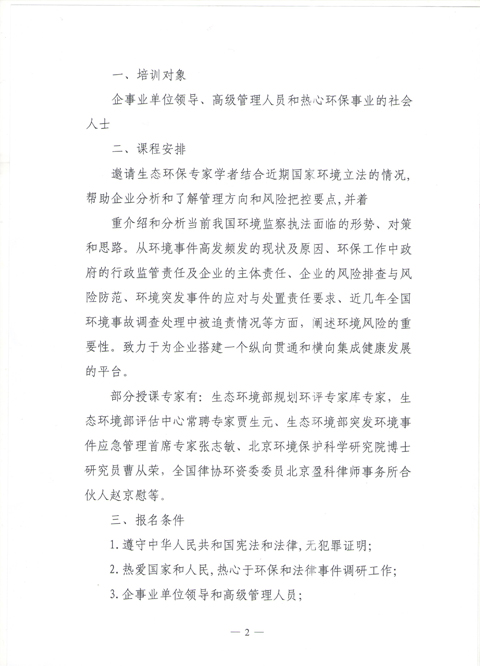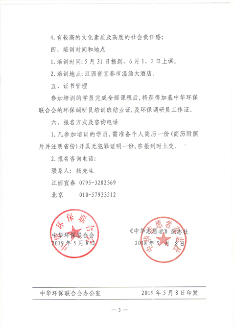 关于“环境与健康普法万里行”——第三期环保调研员培训班的通知