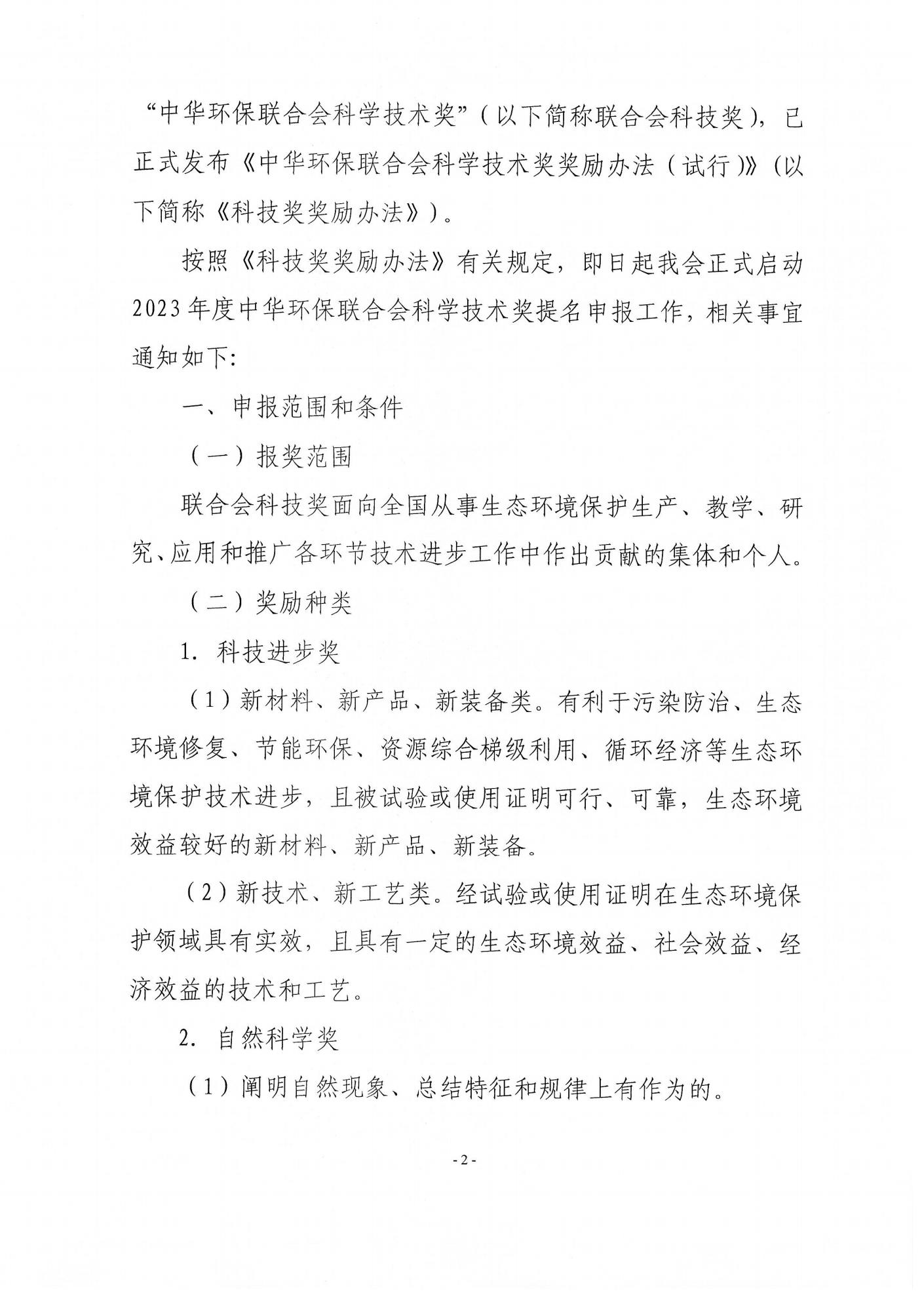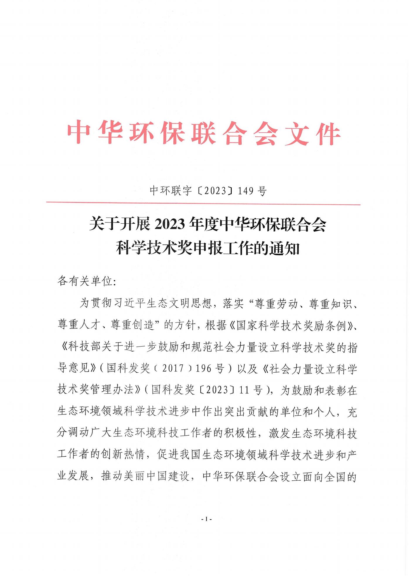 关于开展 2023年度中华环保联合会科学技术奖申报工作的通知