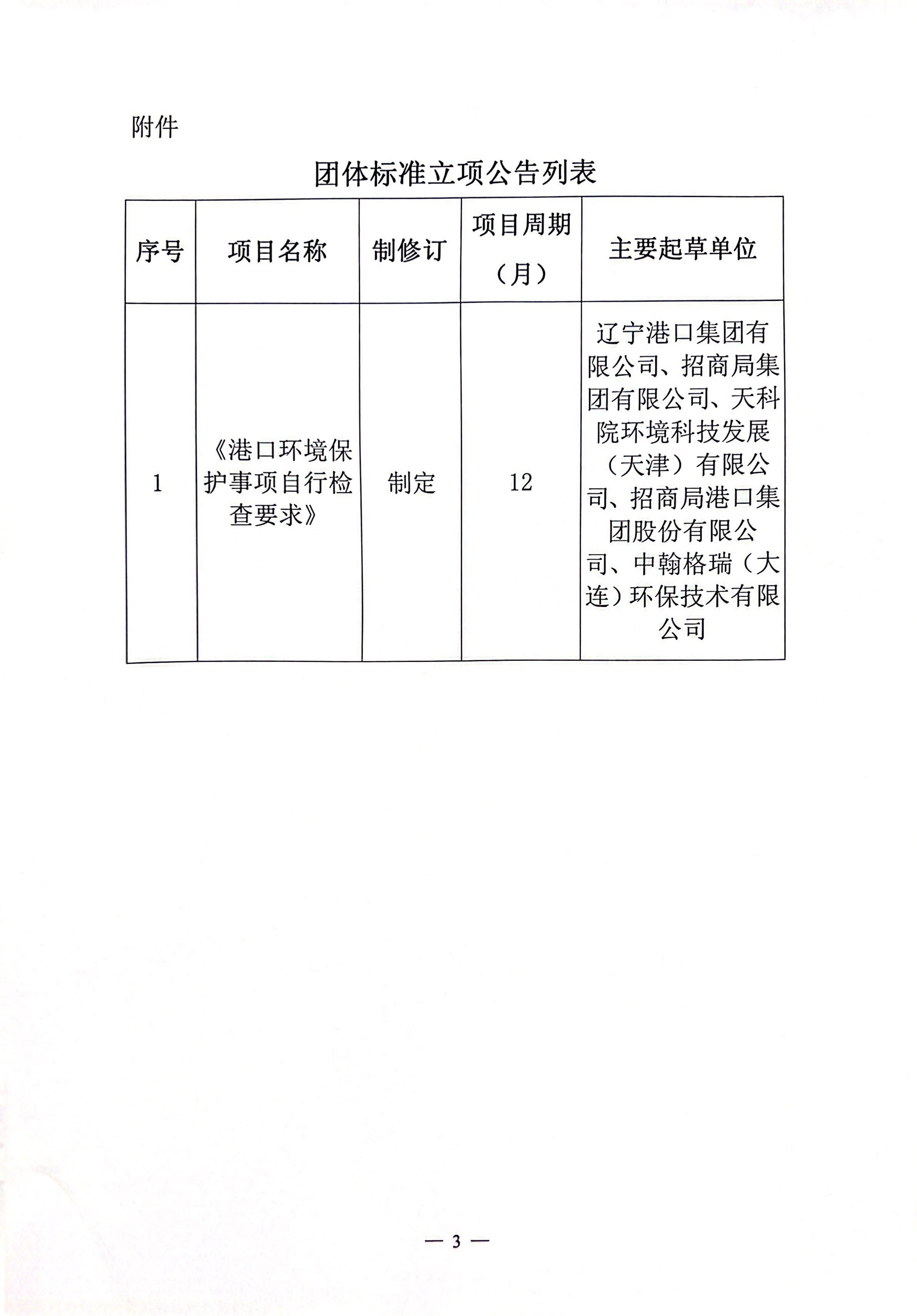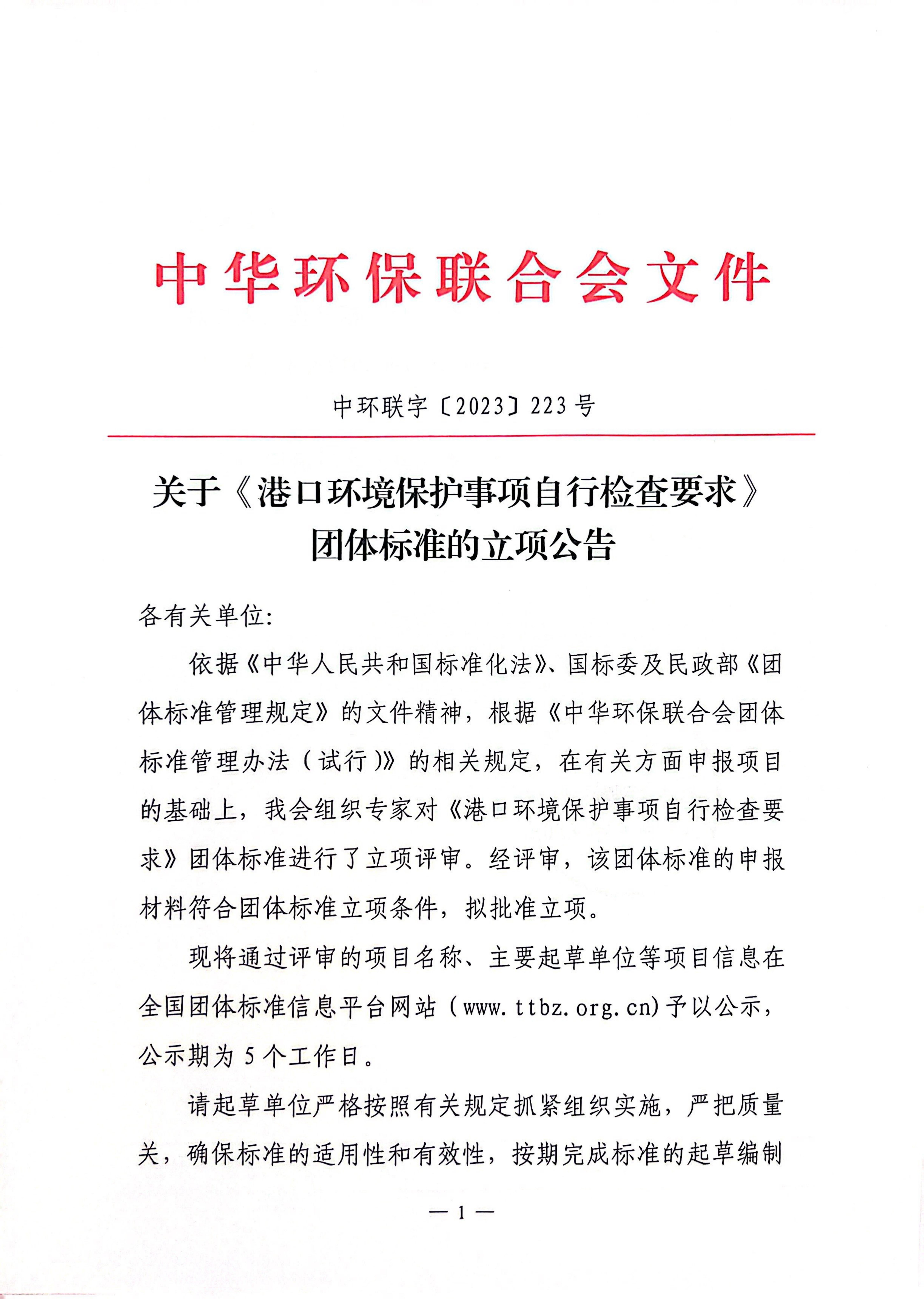 关于《港口环境保护事项自行检查要求》团体标准的立项公告