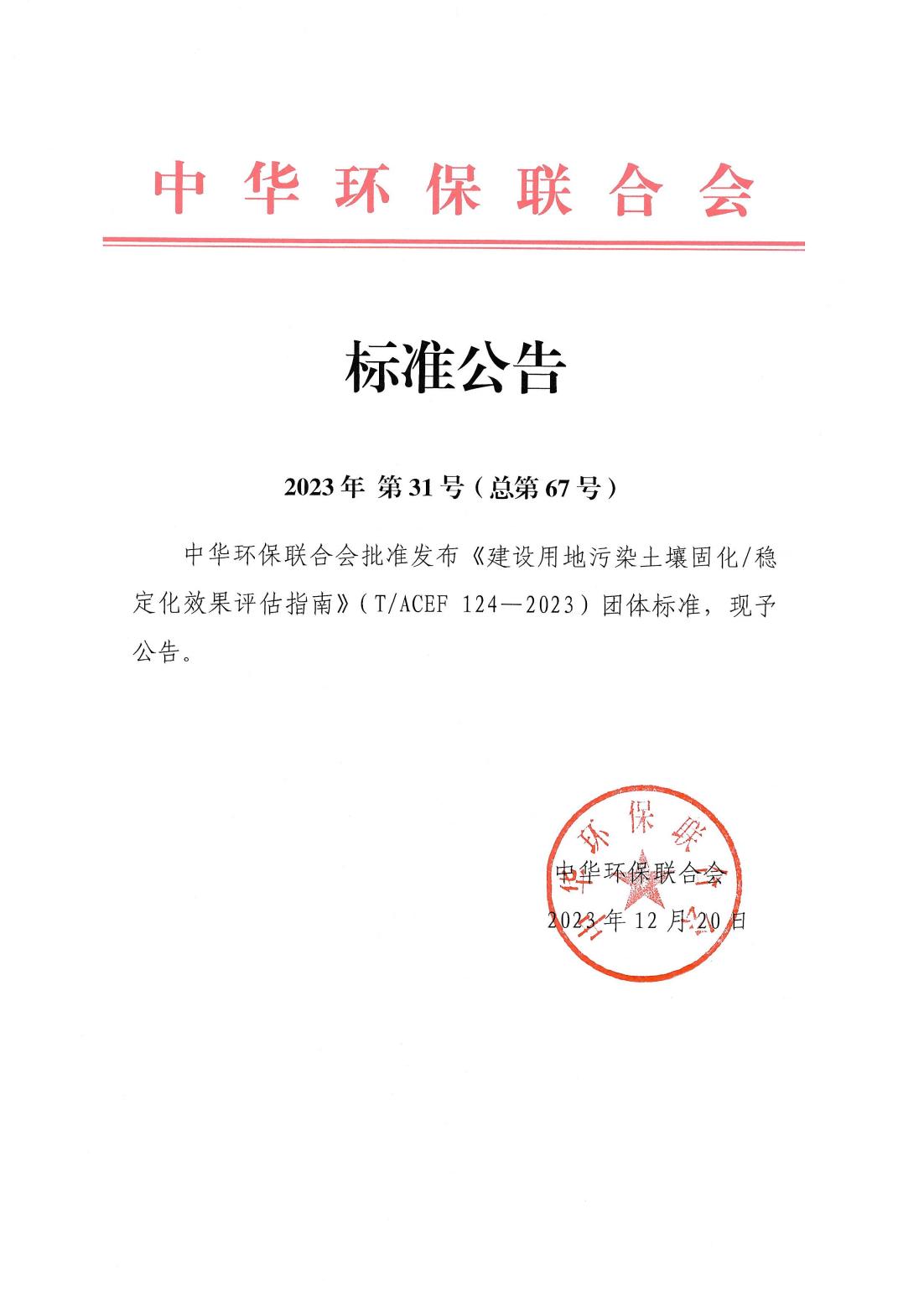 中华环保联合会关于公示2023年度
