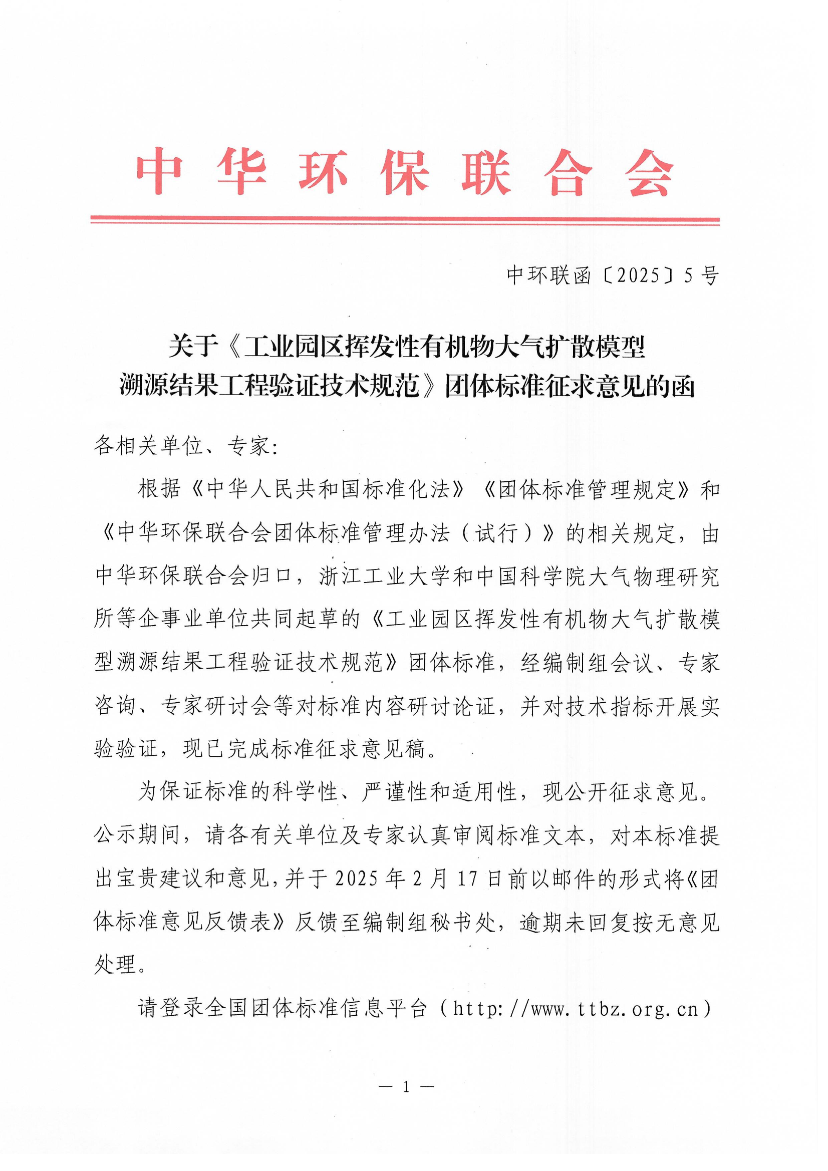 1、《工业园区挥发性有机物大气扩散模型溯源结果工程验证技术规范(征求意见稿)》 |