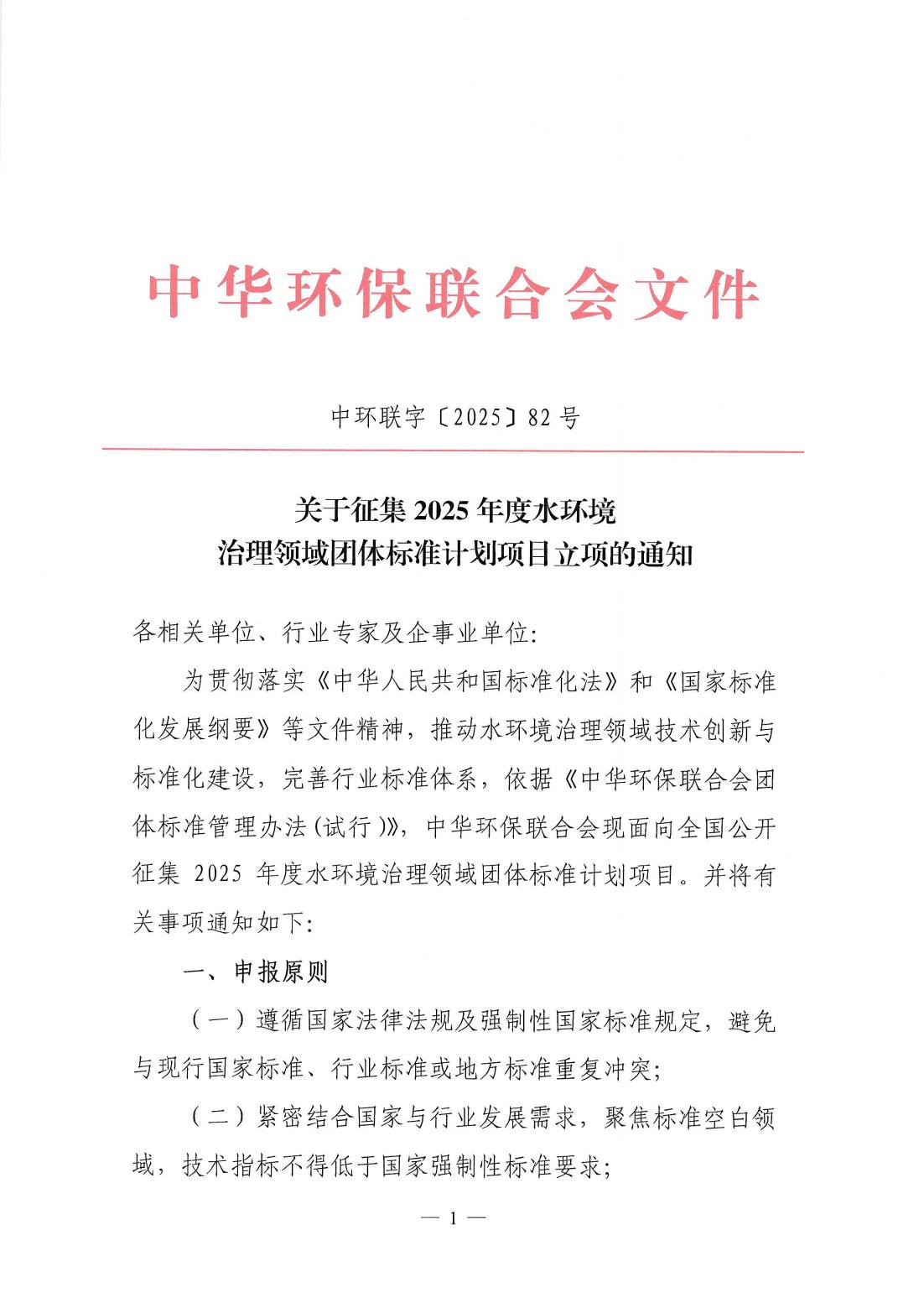 关于征集2025年度水环境治理领域团体标准计划项目立项的通知