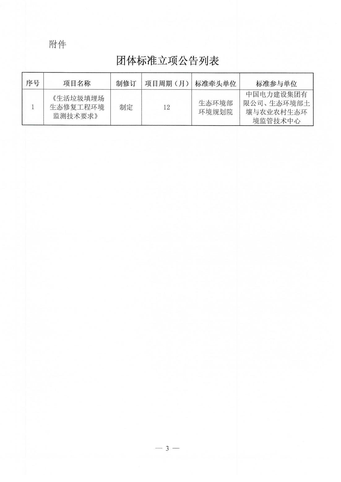 关于《生活垃圾填埋场生态修复工程环境监测技术要求》团体标准立项的公告