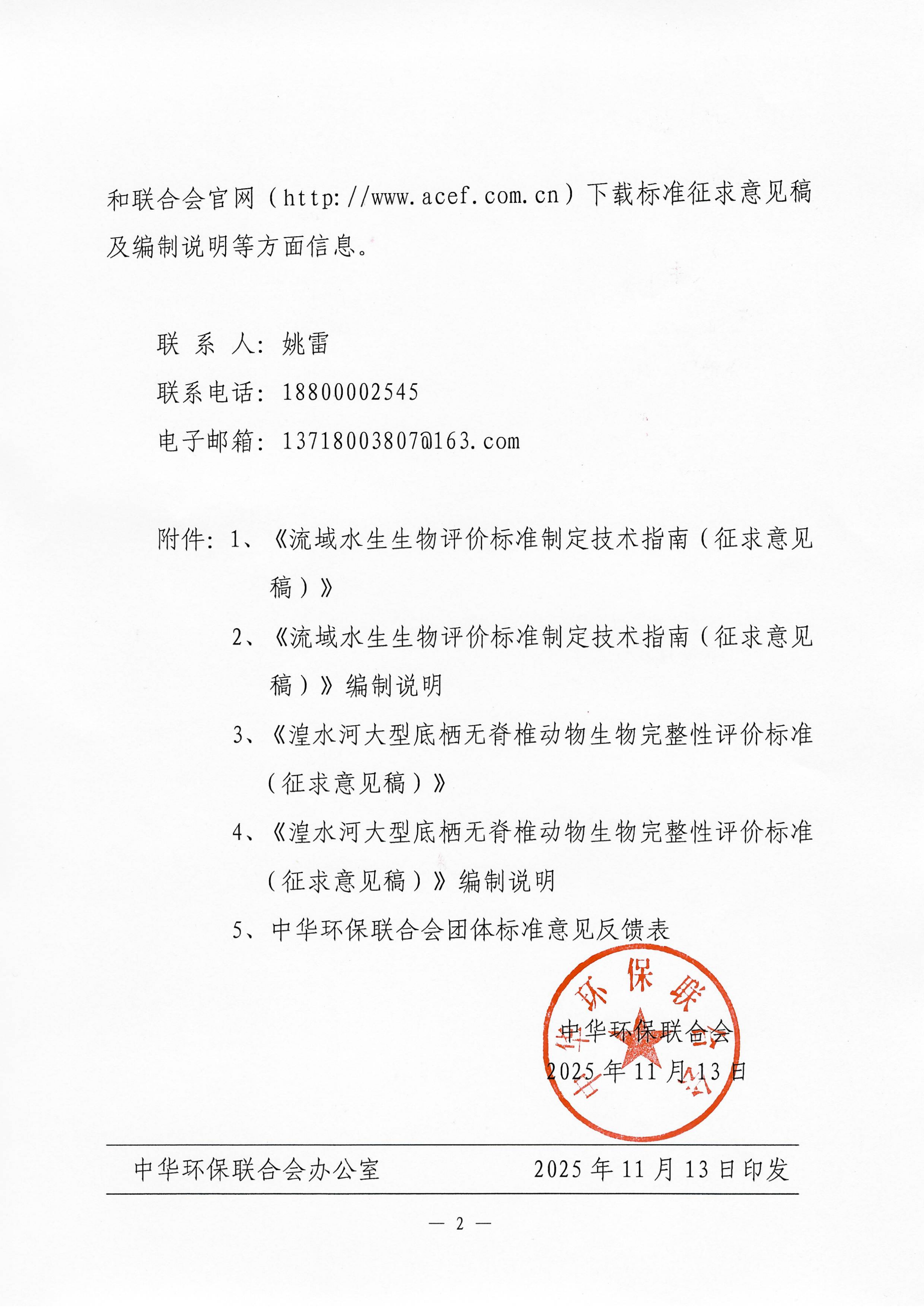关于《流域水生生物评价标准制定技术指南》《湟水河大型底栖无脊椎动物生物完整性评价标准》两项团体标准征求意见的函 |