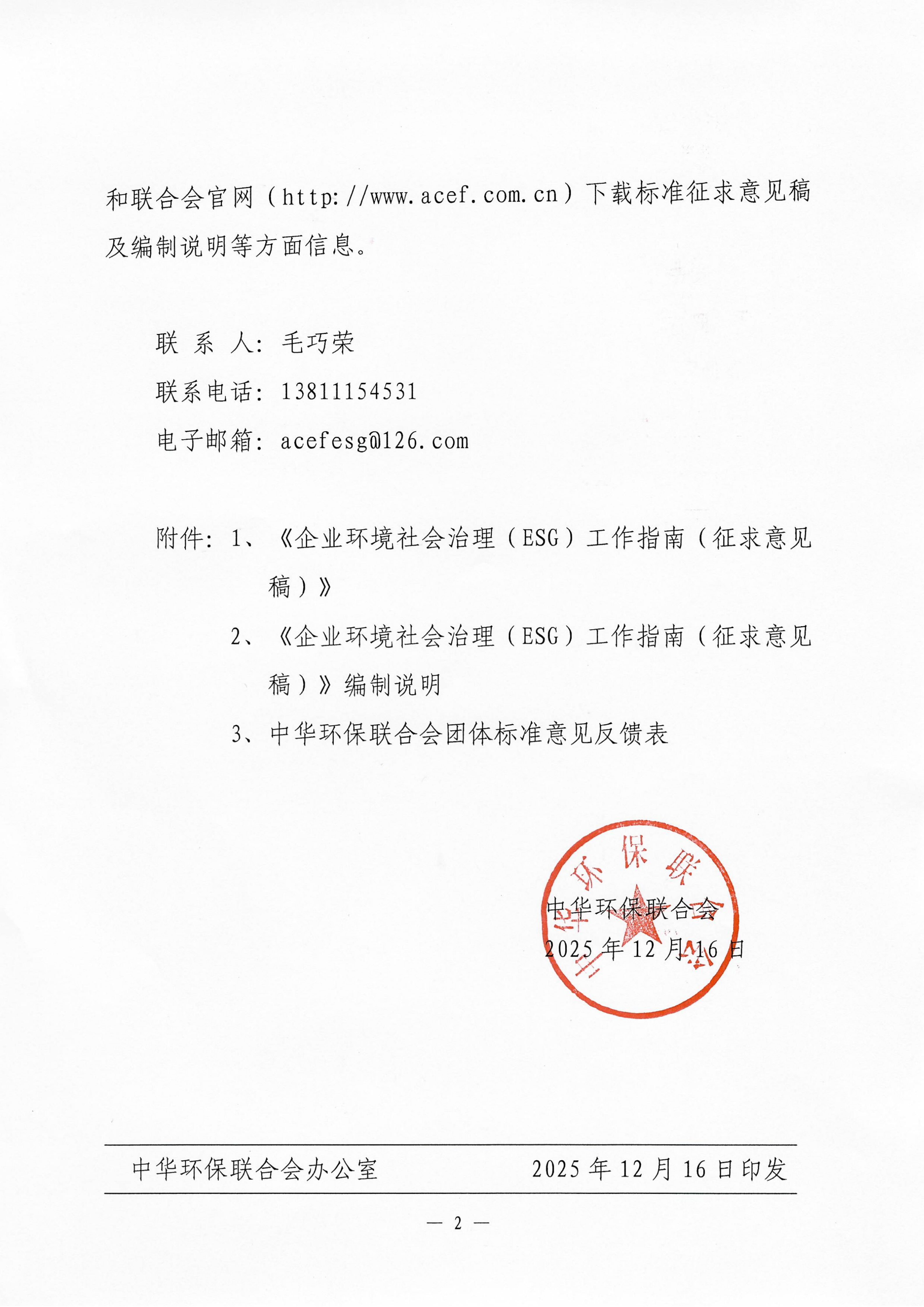 关于《企业环境社会治理(ESG)工作指南》团体标准征求意见的函