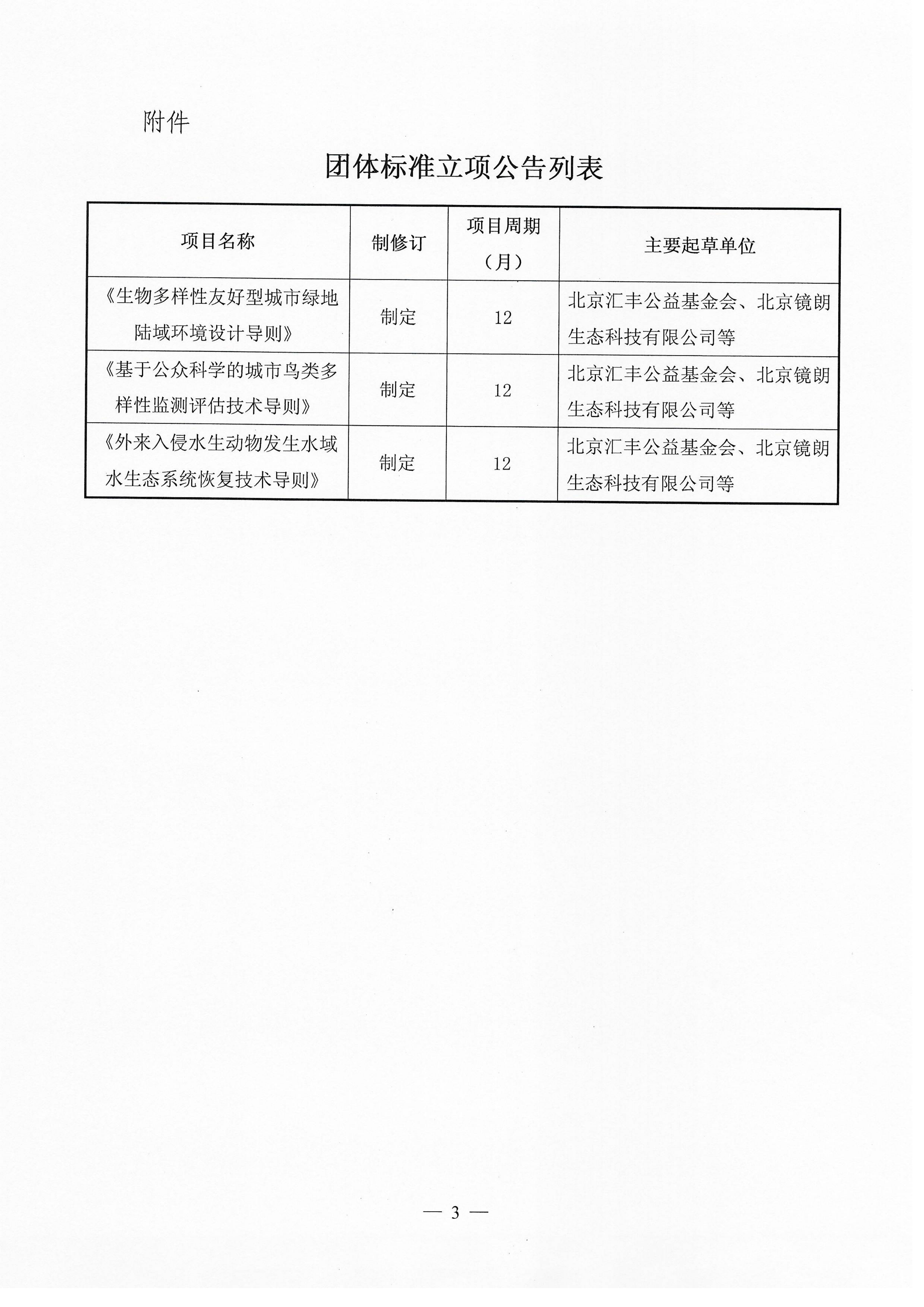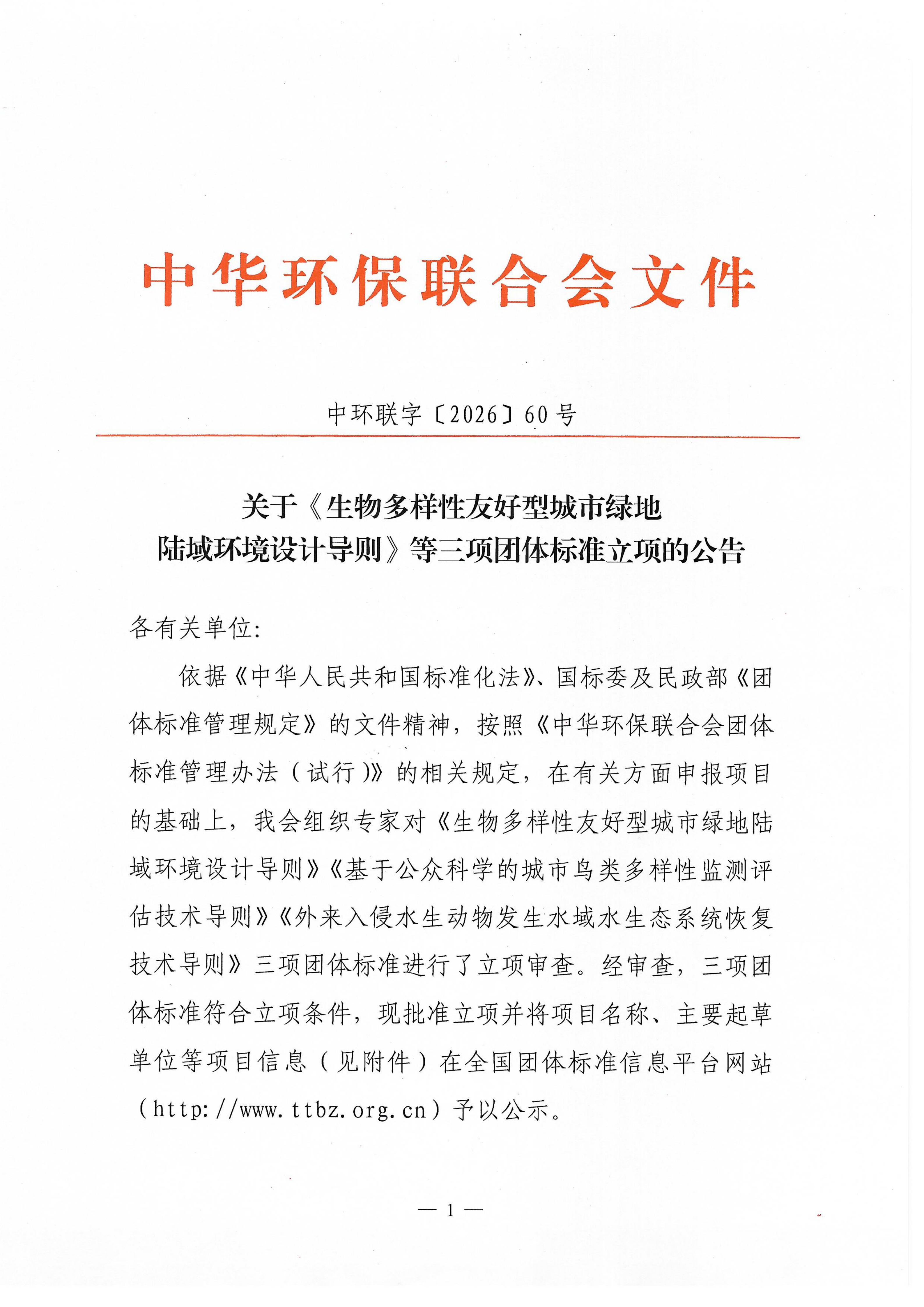 关于《生物多样性友好型城市绿地陆域环境设计导则》等三项团体标准立项的公告