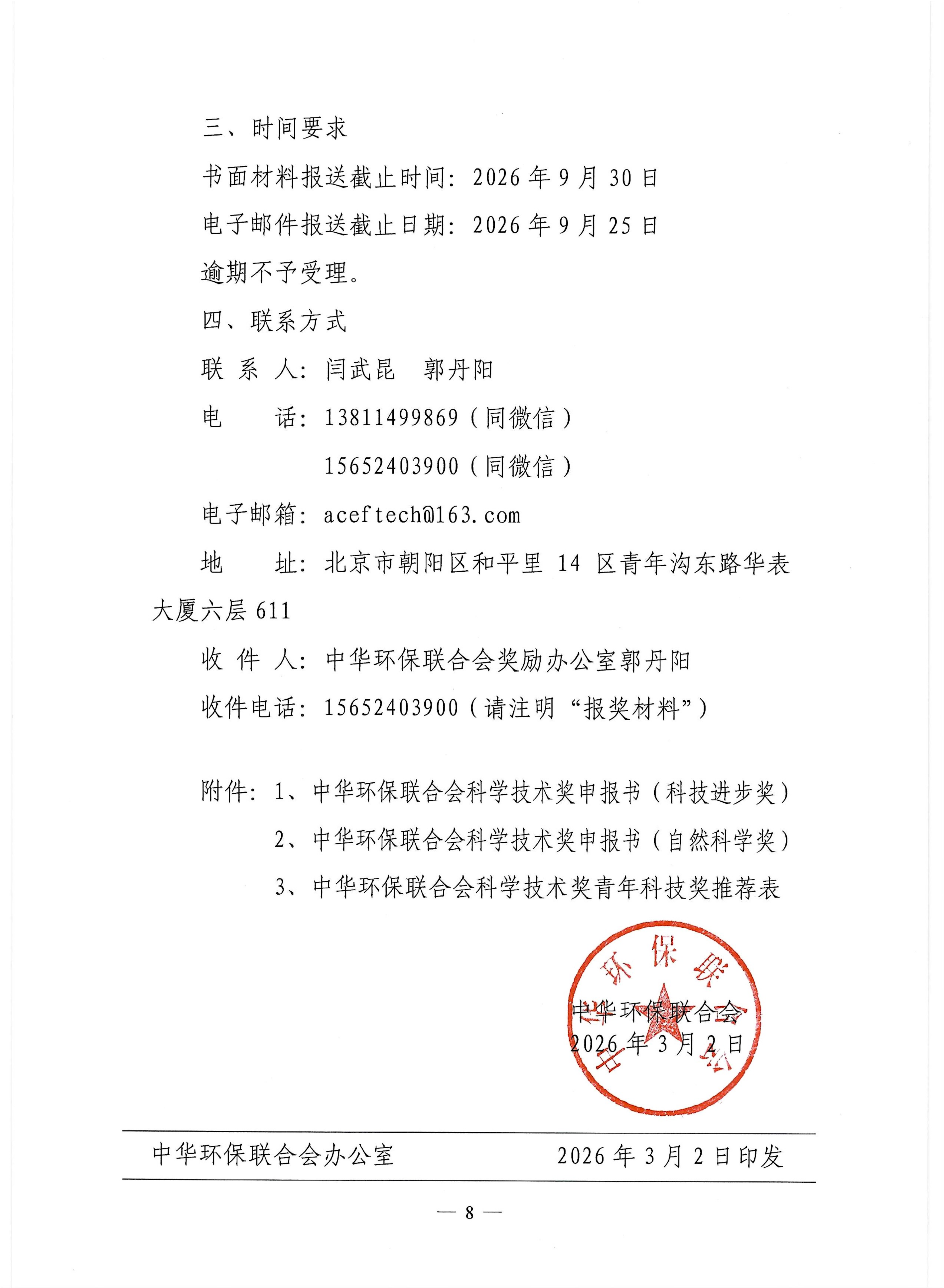 关于开展 2026年度中华环保联合会科学技术奖申报工作的通知