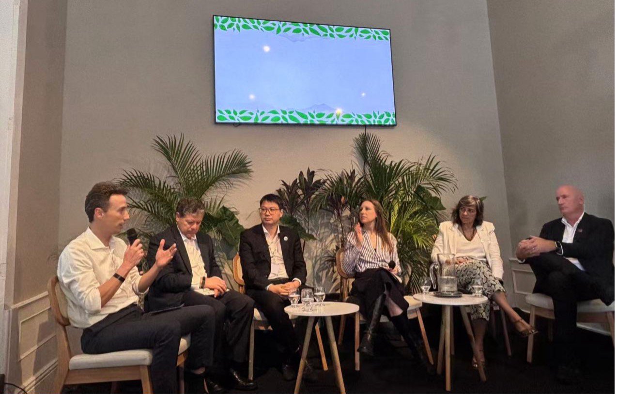 11月12日,联合会组织隆基股份、国轩高科、吉利汽车等企业伙伴参加了“一带一路”绿色发展国际联盟主办的中国角“推动绿色创新合作,共建绿色丝绸之路”高级别边会,及亚马逊环境研究所(IPAM)在贝伦Casa Balaio会场主办的“Forests, Agriculture and Green Economy in the Global South ” 活动,现场有中国代表团团长、生态环境部副部长李高,联合国气候变化大会COP30首席执行官、巴西环境与气候变化国务秘书安娜·托尼,联合国气候变化框架公约执行秘书西蒙·斯蒂尔等多位高级别领导出席。两场活动当中,联合会组织中国企业代表向巴西及带路国家伙伴分享了中国能源转型、循环经济方面的探索与实践,积极回应了本次大会强调的“行动”与“实践”主题。