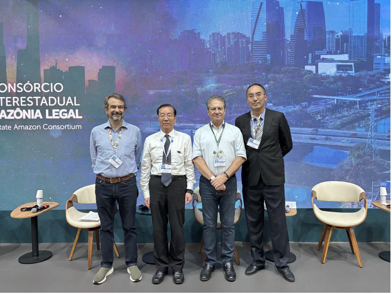 11月17日,中华环保联合会还与亚马逊环境研究所(IPAM)、巴西亚马逊联盟(Brazilian Amazon Consortium)及生态环境部宣教中心,在蓝区亚马逊馆联合主办 “共享未来——中巴可持续之路”论坛。在为期一天的会议当中,中华环保联合会组织了来自中国绿色碳汇基金会、北京市民间组织国际交流促进会、国网浙江电力公司等中方代表,参与了森林保护、能源转型、AI 与农业发展等多个话题讨论,与巴西组织进行了深入的交流,并为与会代表带来中国民间组织的智慧与力量。