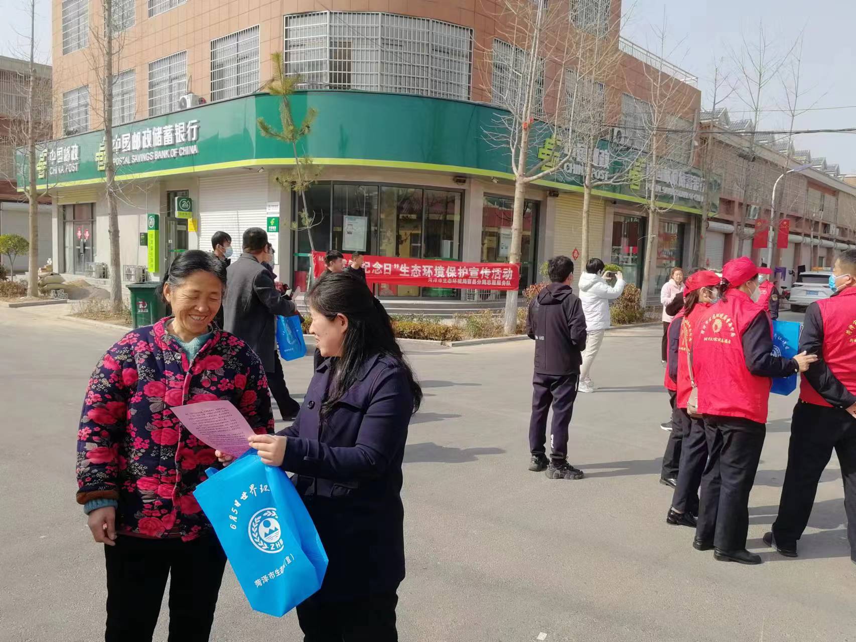 活动现场,志愿者们通过设置志愿服务台、摆放宣传展板、悬挂宣传横幅、发放宣传资料及环保购物袋等方式,向过往群众宣传有关垃圾分类、生活污水、畜禽养殖等生态环境保护知识,普及环保相关法律法规,倡导群众践行勤俭节约、低碳环保、文明健康的生活方式。
