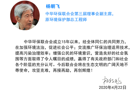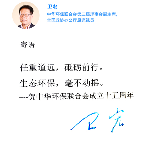 时值中华环保联合会成立十五周年,陆续刊发领导寄语。