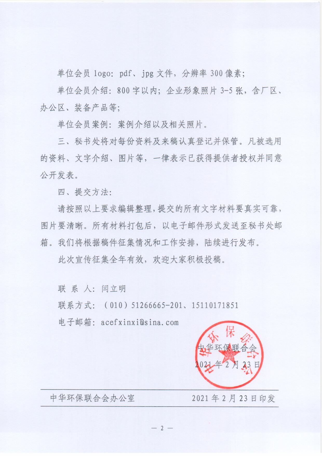 中华环保联合会关于开展单位会员宣传资料征集的函