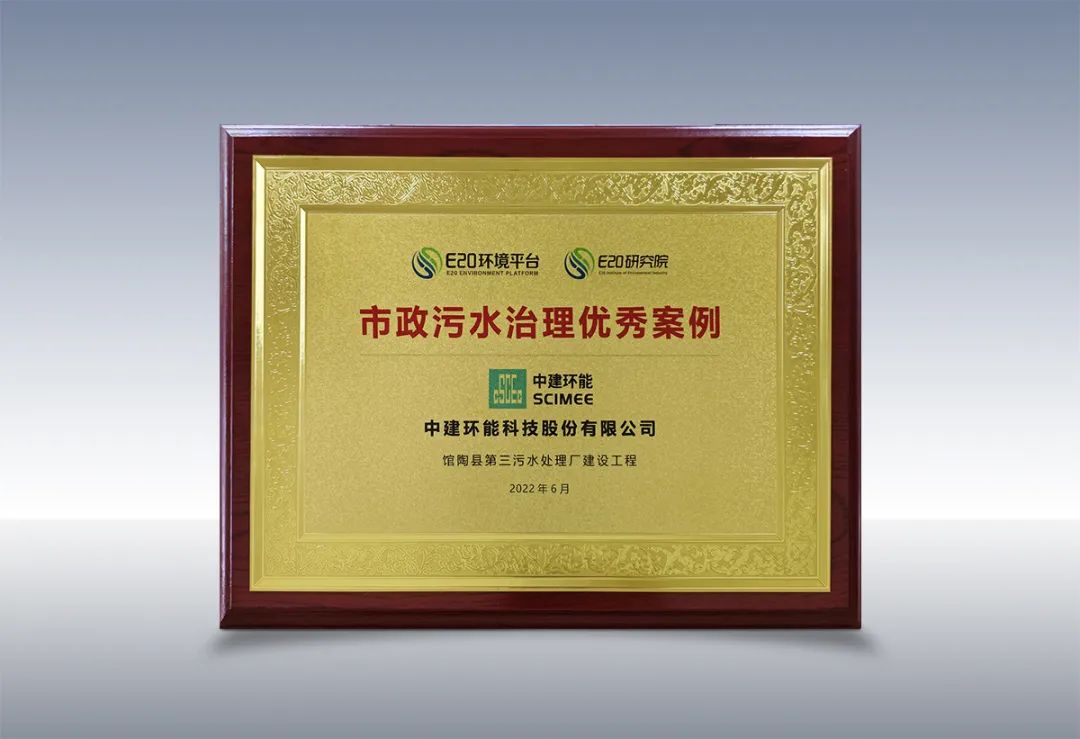 2022年,中建环能邯郸市馆陶县智能产业园区新建第三污水处理厂(EPC)项目,获得由E20环境平台&E20环境研究院联合颁发的市政污水治理领域优秀案例称号。