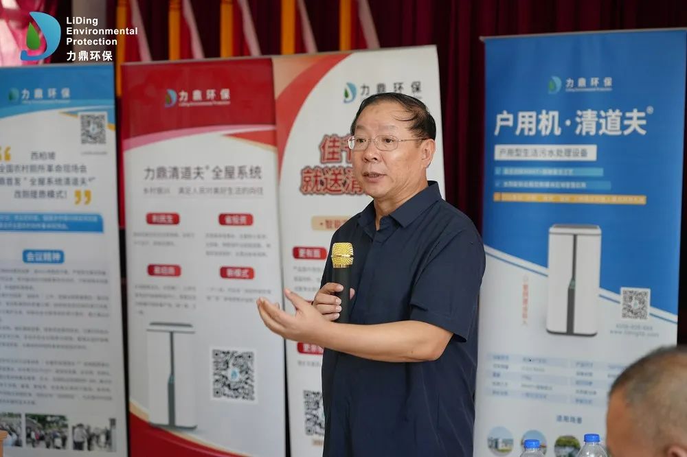 力鼎环保董事长何海周对清道夫全屋系统技术和本次研讨会做总结陈词,强调了力鼎环保“力鼎清道夫®全屋系统”可为目前“农村改厕污水提质”提供关键性重要支撑。