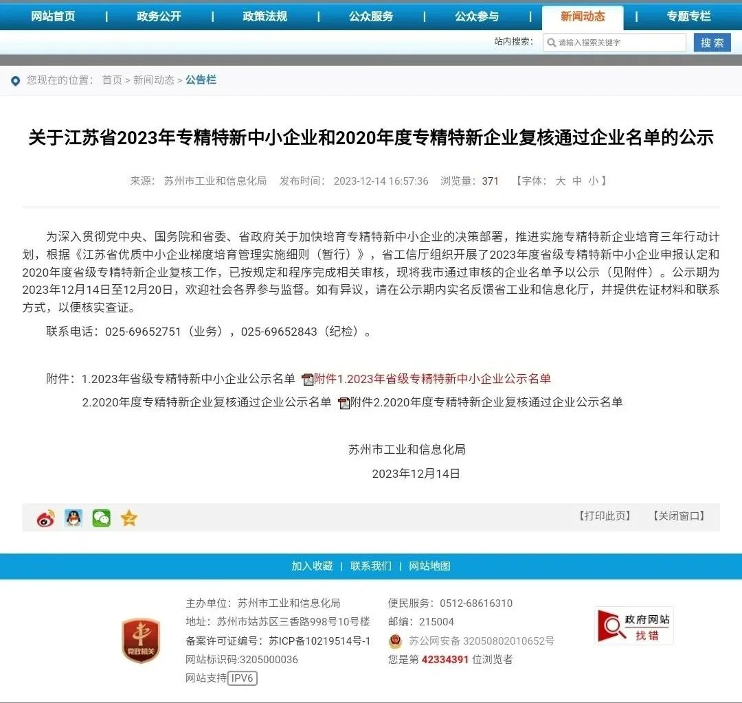 江苏力鼎环保装备有限公司成功获得江苏省专精特新中小企业认定。