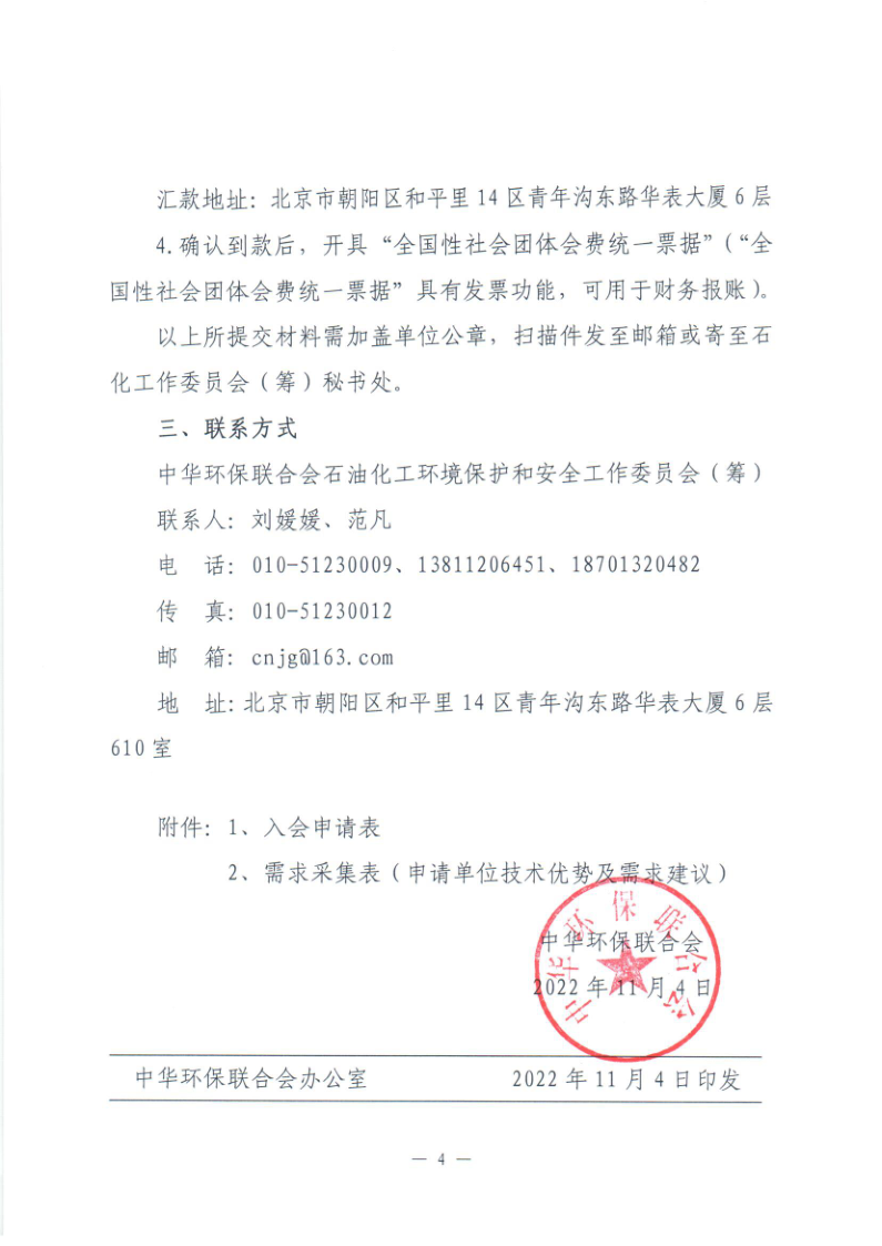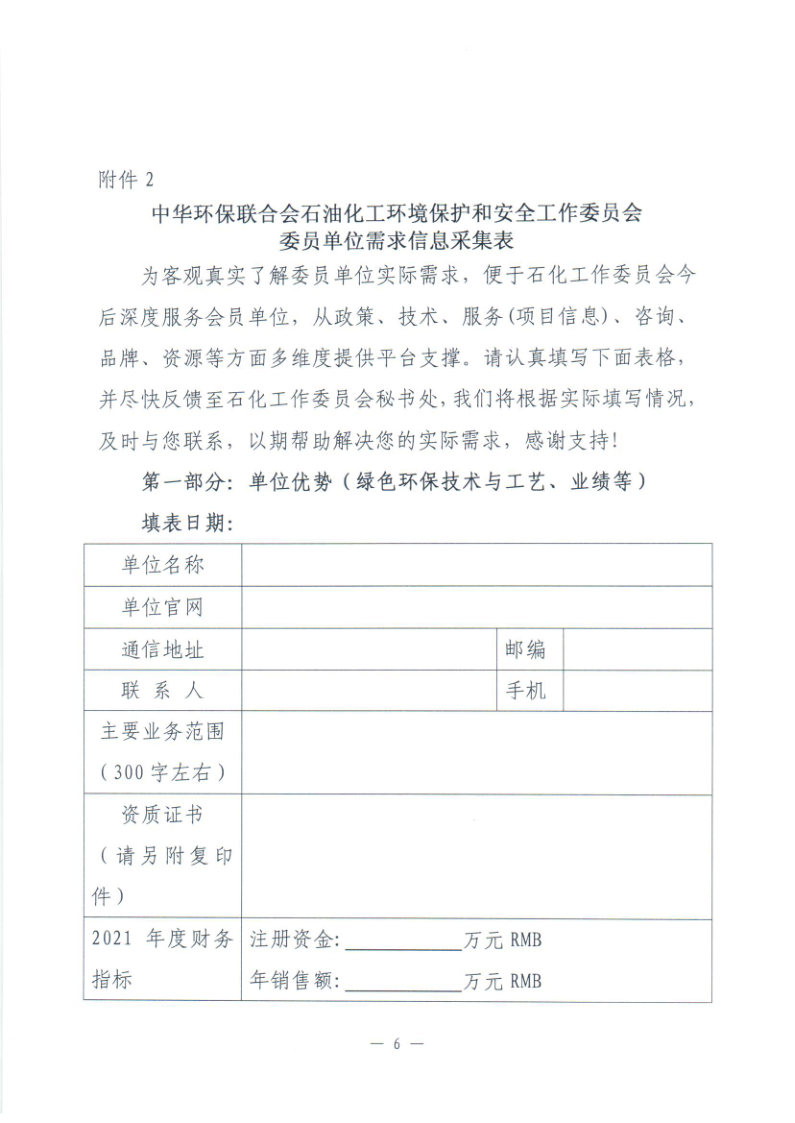 关于邀请加入中华环保联合会石油化工环境保护和安全工作委员会(筹)的函