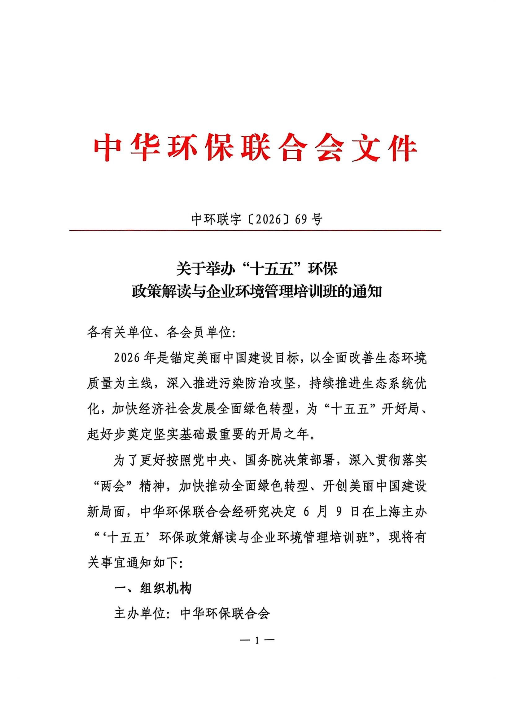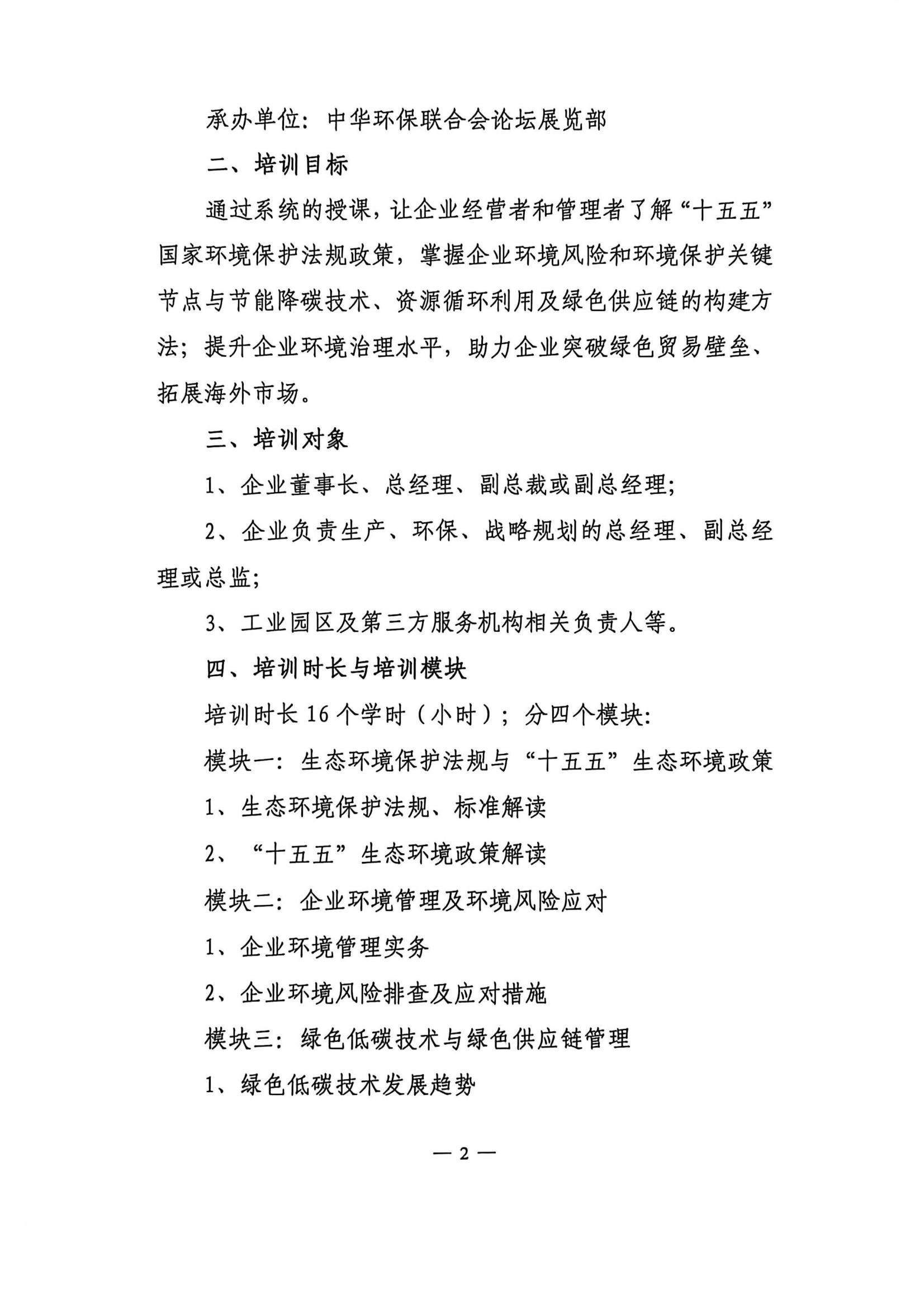 关于举办“十五五”环保政策解读与企业环境管理培训班的通知