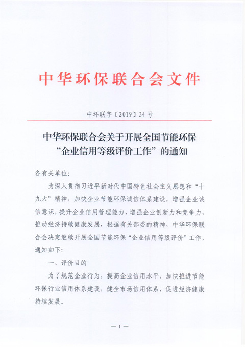 关于开展全国节能环保行业“企业信用等级评价工作”的通知