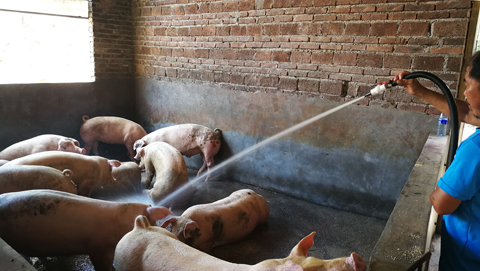 专家实地走访养殖基地粪污处理工程——养殖场冲洗