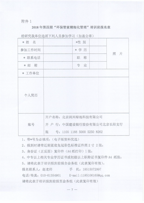 [附件]关于举办第四期、第五期“环保管家精细化管理”培训班报名表