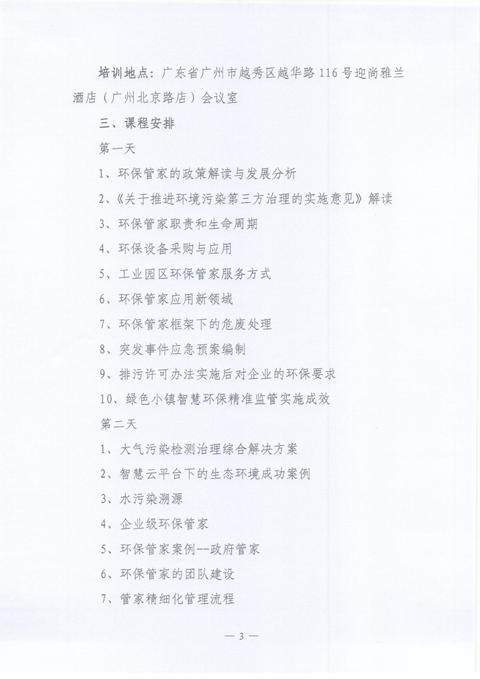 关于举办2018年第四期、第五期“环保管家精细化管理”培训班的通知