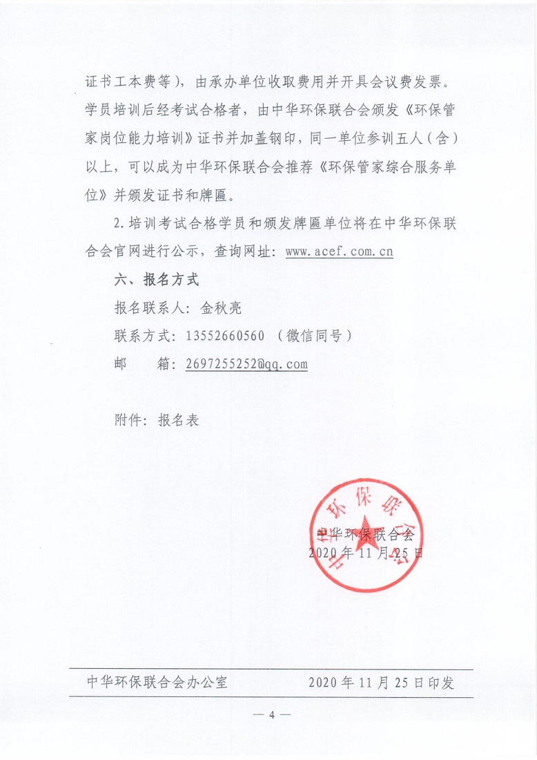 关于开展 2020 年度中华环保联合会