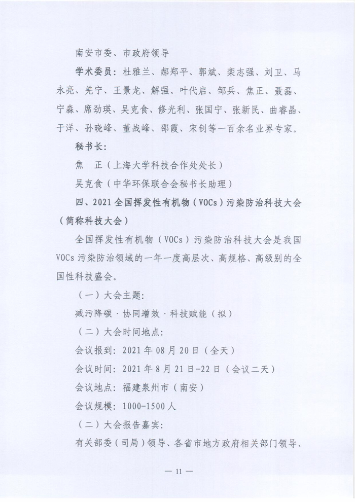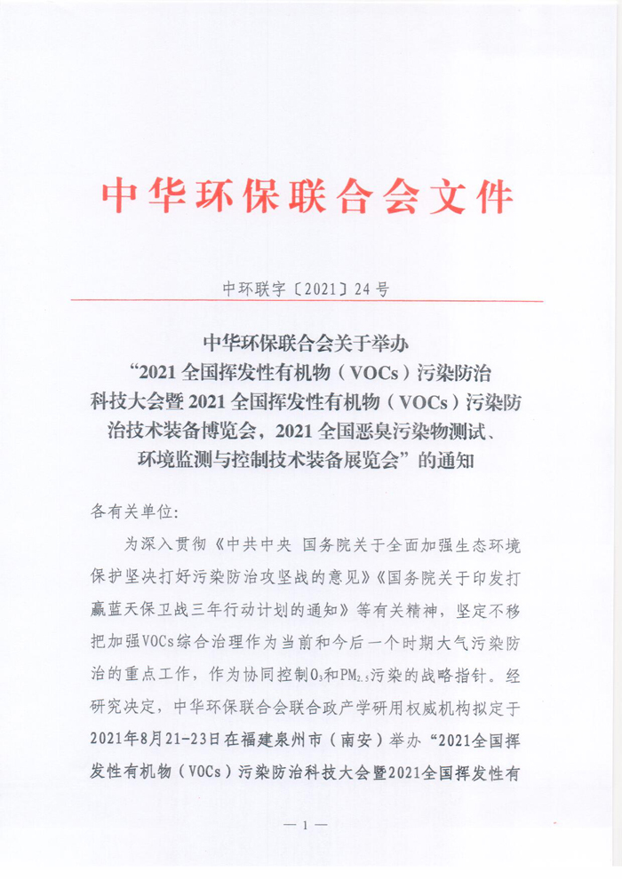 关于举办“2021全国挥发性有机物(VOCs)污染防治科技大会暨2021全国挥发性有机物(VOCs)污染防治技术装备博览会,2021全国恶臭污染物测试、环境监测与控制技术装备展览会”的预通知