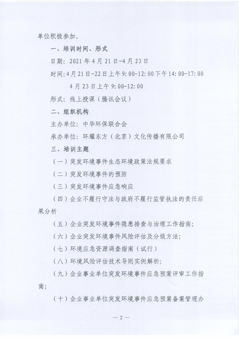 关于举办2021年第4期“环境应急预案编制及评审从业人员”专业技术岗位人才培训班的通知