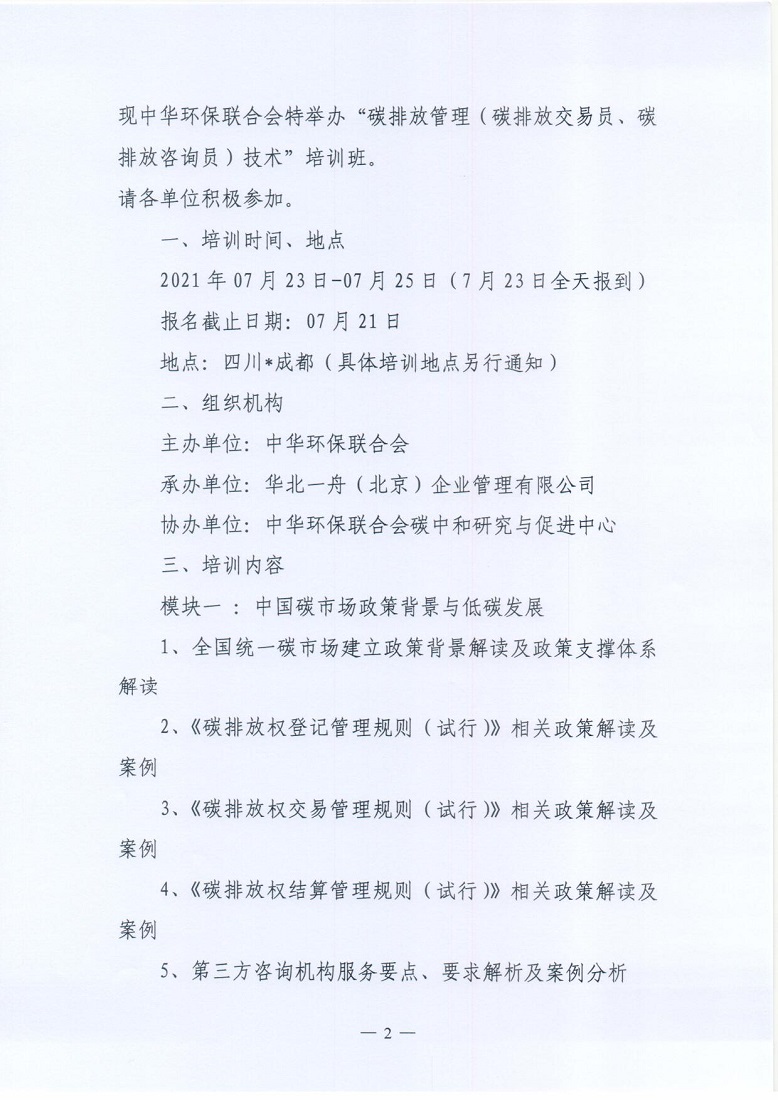关于举办2021年第5期“碳排放管理(碳排放交易员、碳排放咨询员)技术培训班”的通知