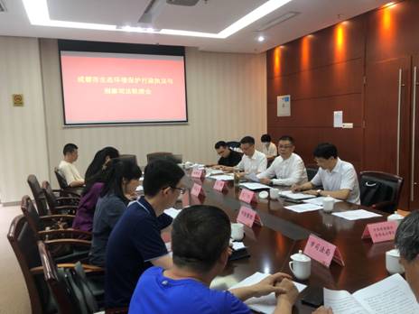 市法院、市检察院、市公安局、市司法局、成都高新技术产业开发区法院相关部门负责人、市生态环境局分管领导、相关处(室)和直属单位负责人参会。与会人员在会上就如何深化环境“两法”衔接工作及各自取得的工作成效展开了讨论和分享。