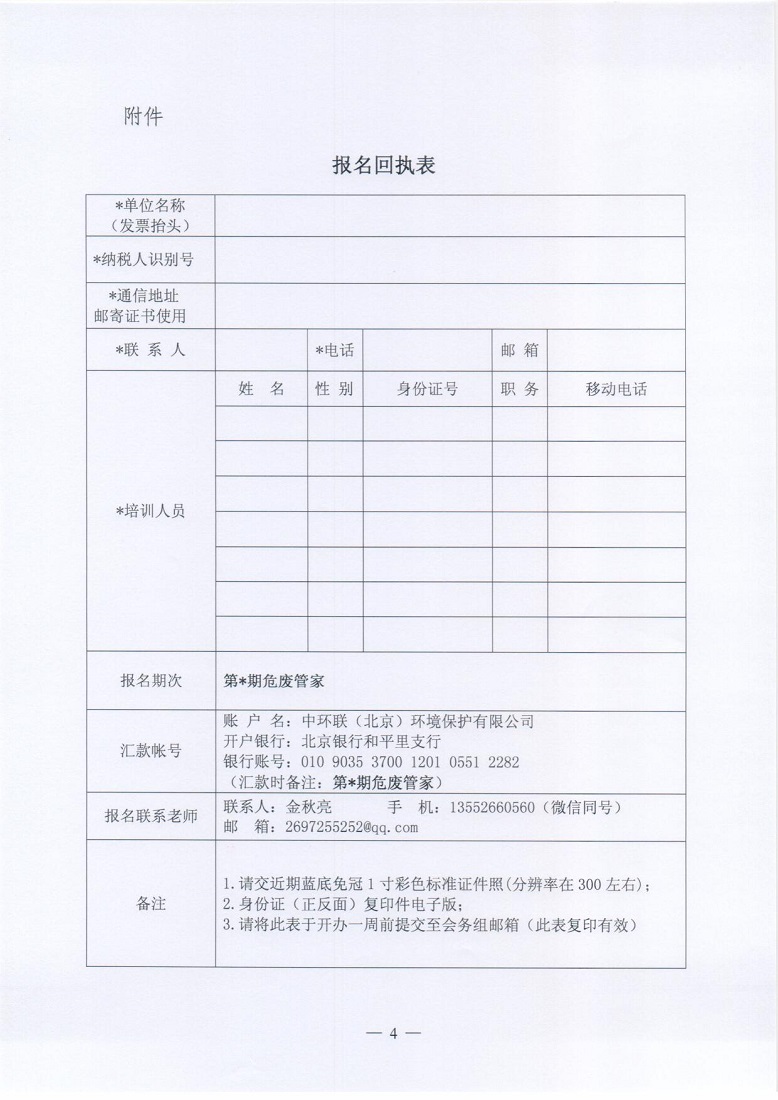 报名回执表