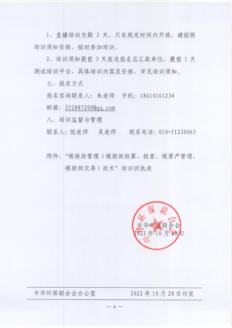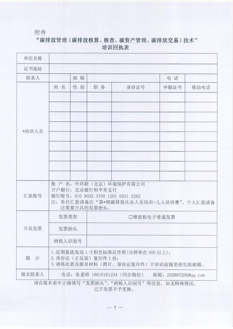 “碳排放管理(碳排放核算、核查、碳资产管理、碳排放交易)技术”培训回执表