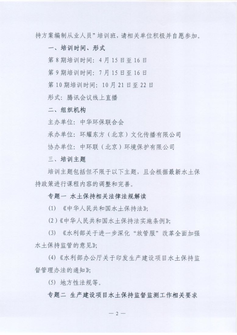 关于举办第8-10期“生产建设项目水土保持方案编制从业人员”培训班的通知