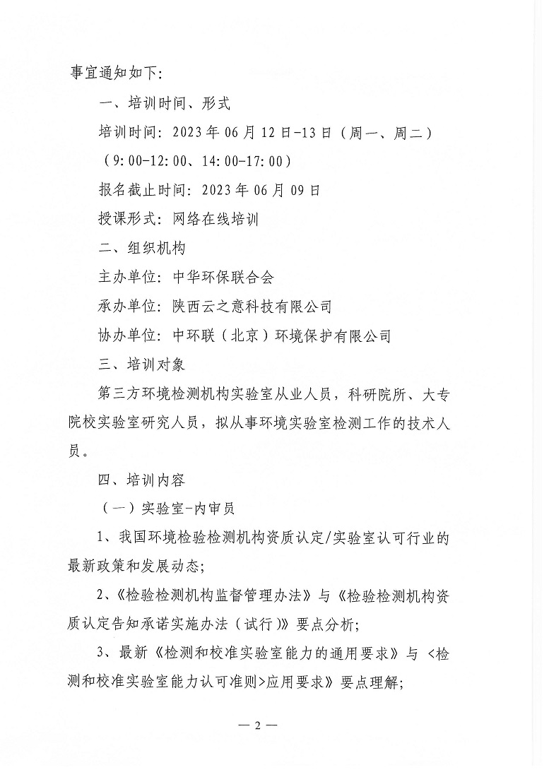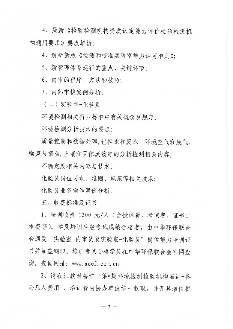 关于举办第3期“环境检测检验机构专业岗位能力”网络培训班的通知