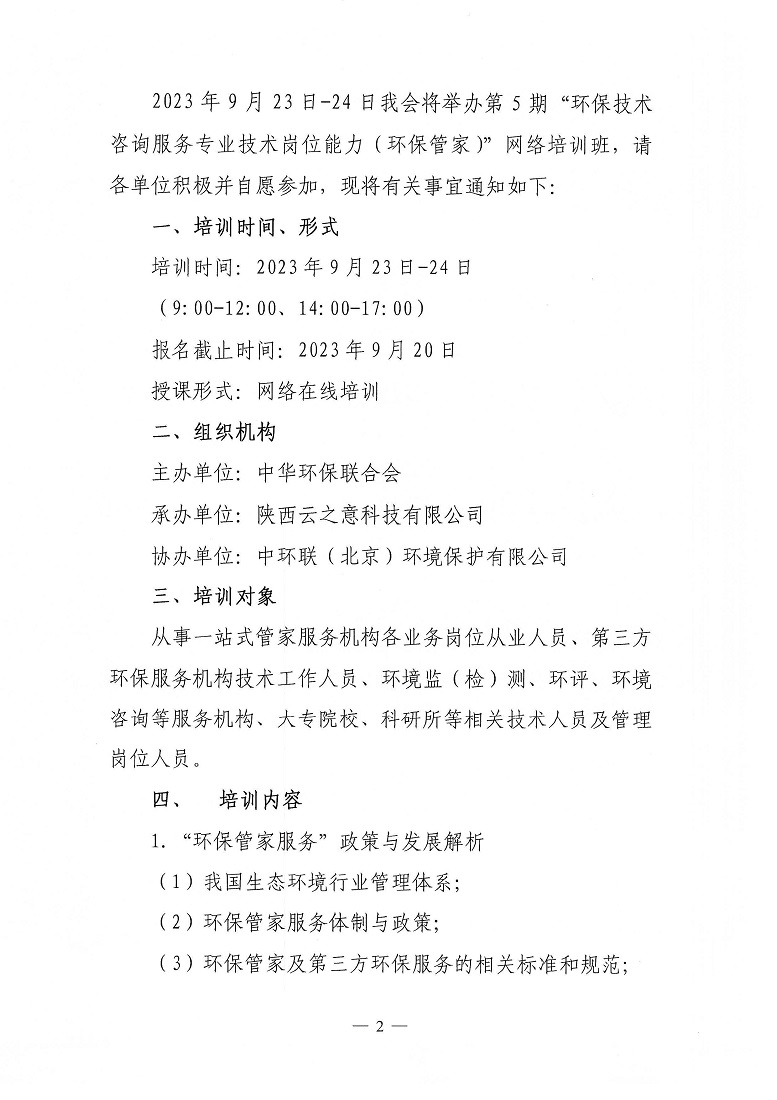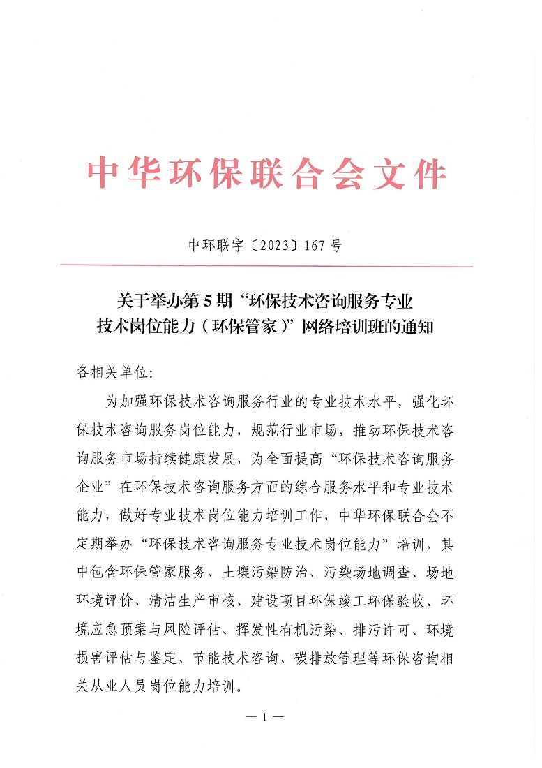 关于举办第5期“环保技术咨询服务专业技术岗位能力(环保管家)”网络培训班的通知