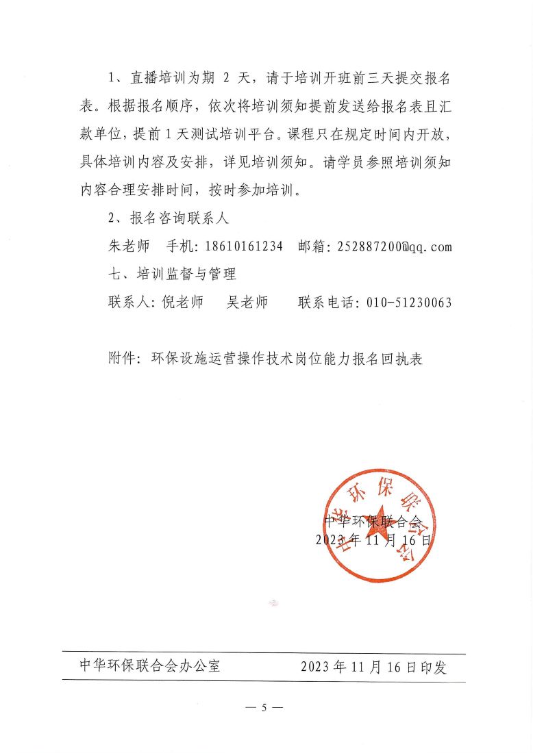 关于举办第11期“环保设施运营操作技术岗位能力”网络培训班的通知