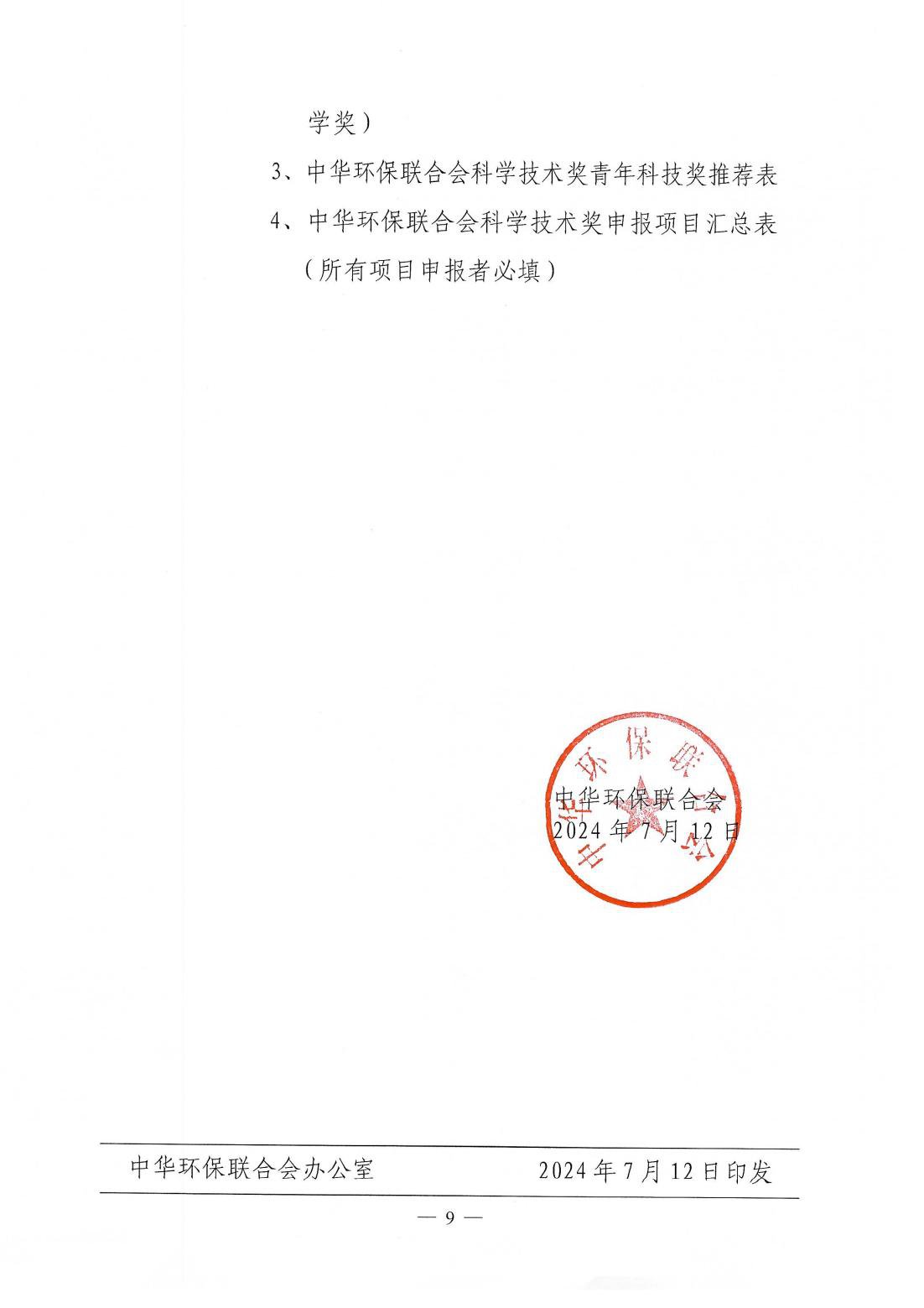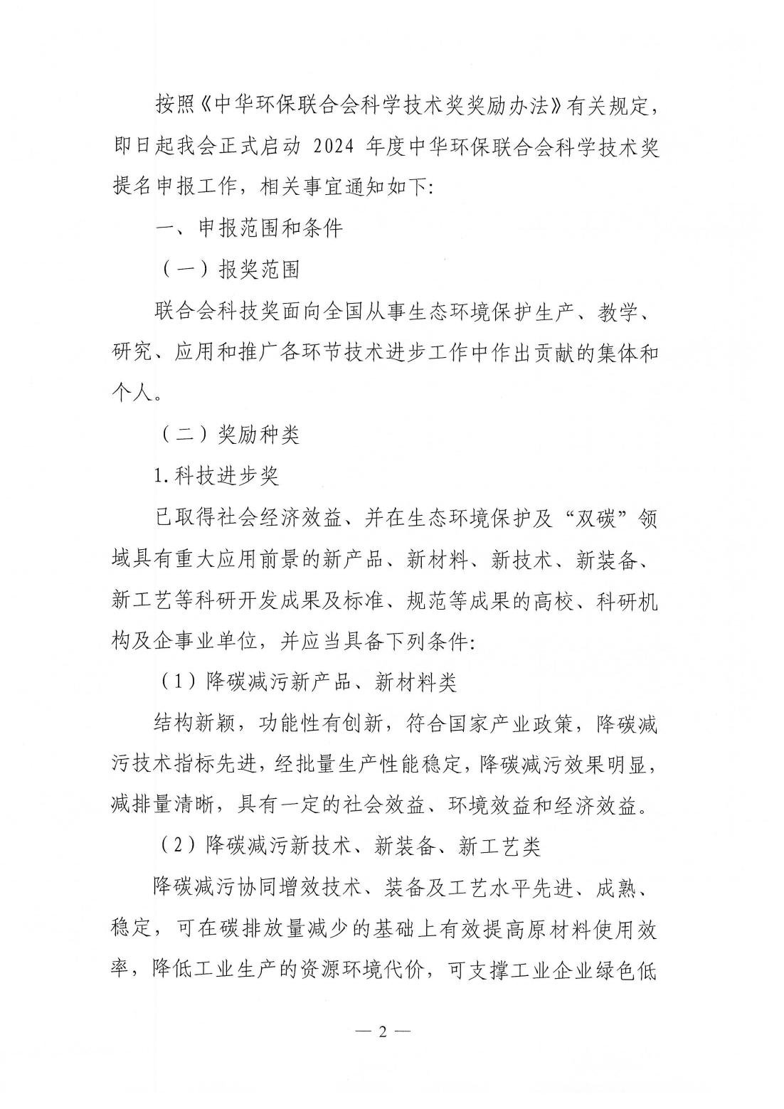 关于开展2024年度中华环保联合会科学技术奖申报工作的通知