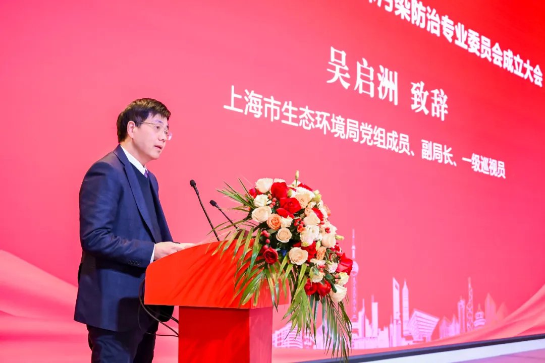 上海市生态环境局党组成员、副局长、一级巡视员吴启洲出席成立大会致辞并祝贺专委会的成立。
