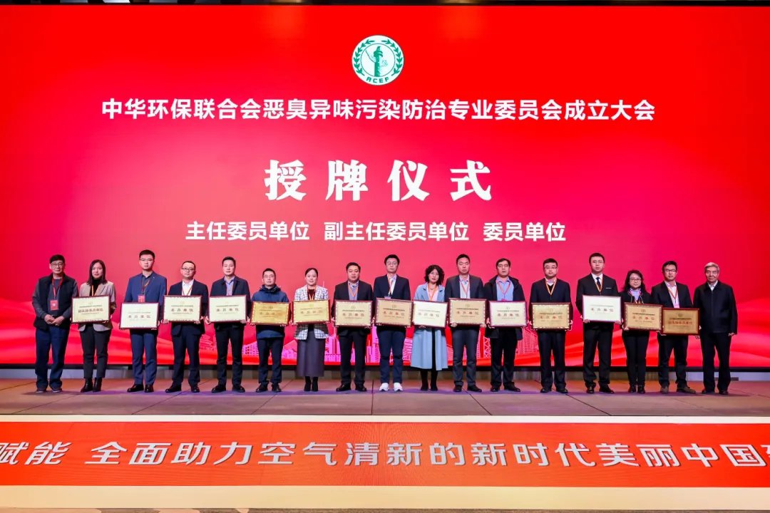 领导嘉宾共同为中华环保联合会恶臭异味污染防治专业委员会揭牌。
