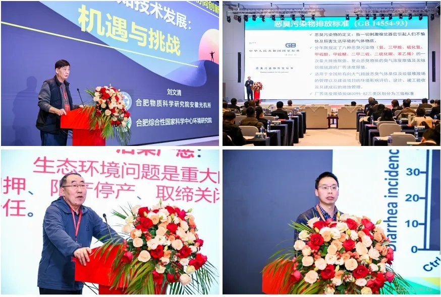 中国工程院院士刘文清作了《异味气体感知技术发展:机遇与挑战》的主题报告,中国工程院院士印遇龙(尹杰代表)作了《益生菌促进生猪绿色健康养殖》的主题报告,中国环境科学研究院首席科学家、研究员柴发合作了《面向美丽中国建设目标 进一步强化恶臭(异味)污染综合防治》的主题报告,原环境保护部应急办正厅级巡视员、研究员、生态环境部突发环境事件环境应急与执法专家张志敏作了《恶臭异味生态环境监督帮扶要求》的主题报告。