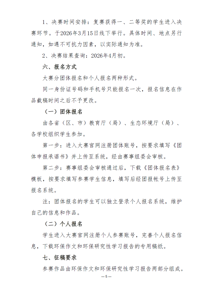 关于举办第七届全国中学生环境保护优秀作文征集活动的通知