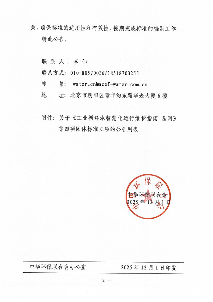 关于《工业循环水智慧化运行维护指南 总则》等四项团体标准立项的公告