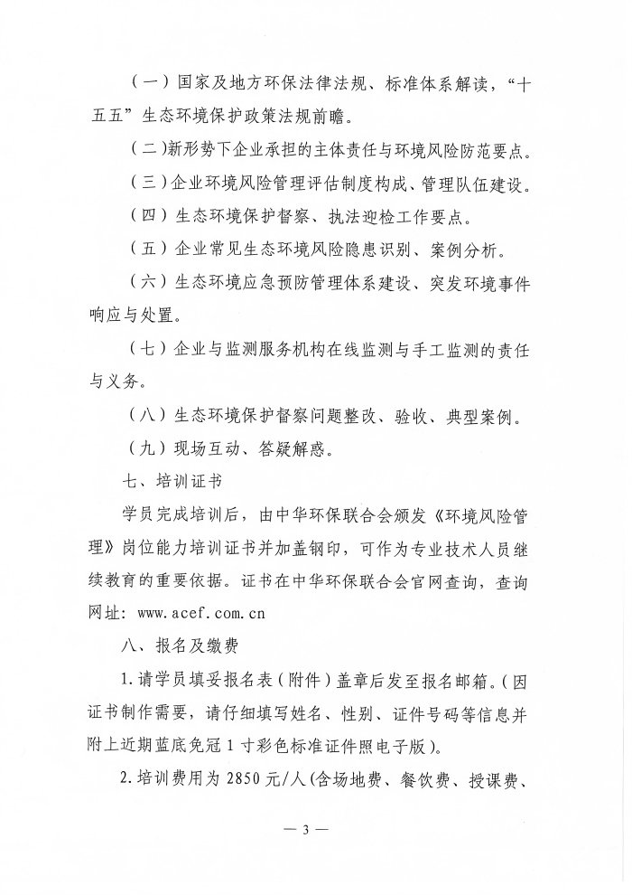 关于举办“环境风险管理”专题培训班的通知