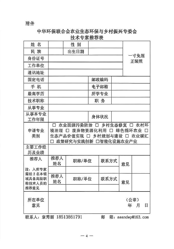 关于征集"中华环保联合会农业生态环保与乡村振兴专委会"专家组成员的通知