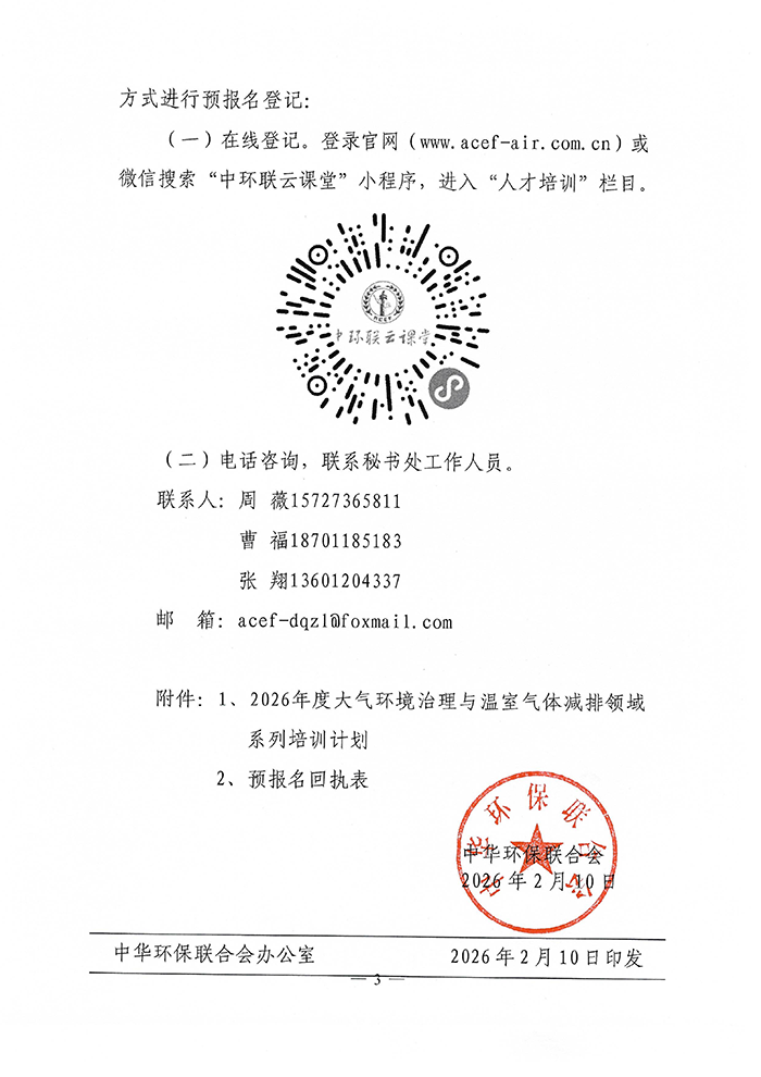 关于发布2026年度系列培训计划(大气)的通知