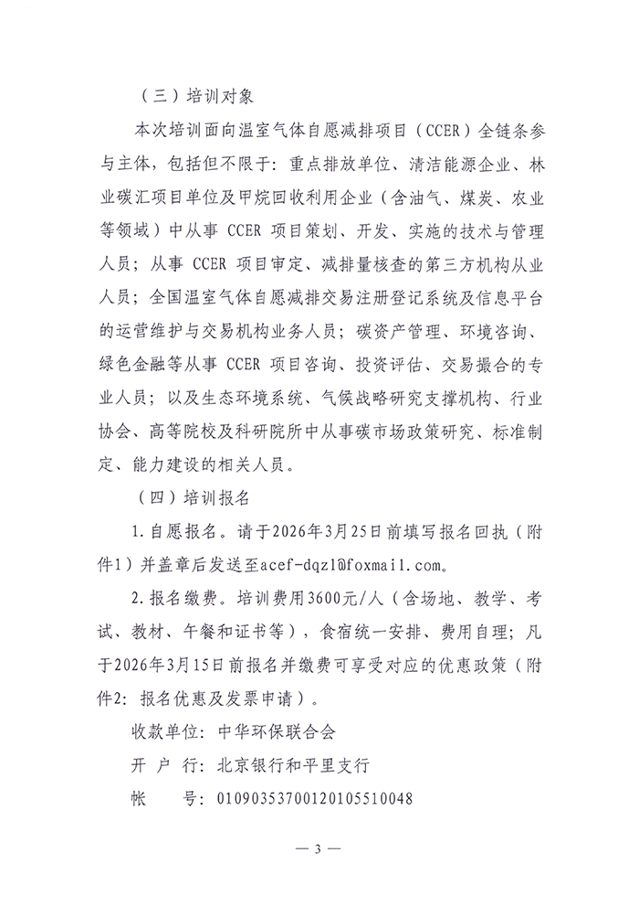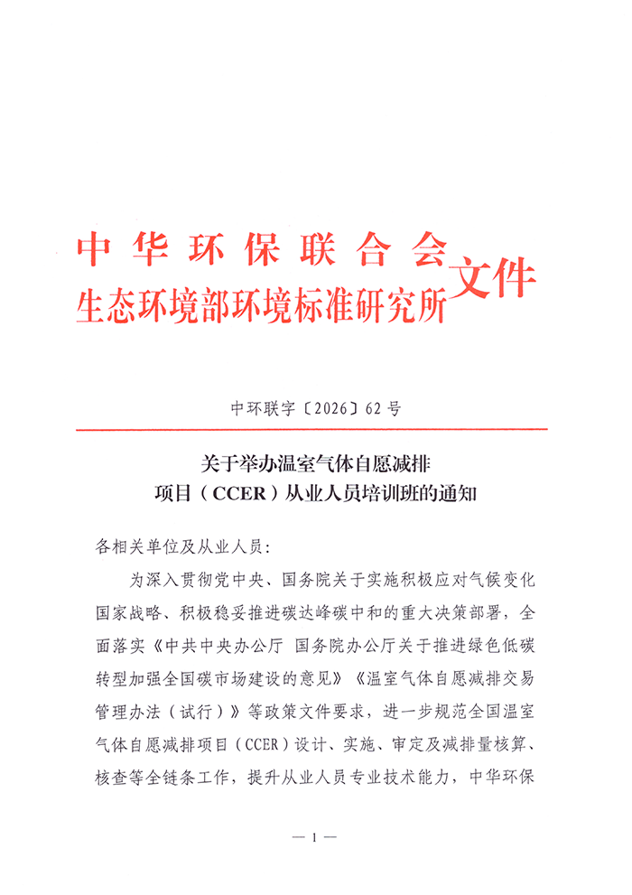 关于举办温室气体自愿减排项目(CCER)从业人员培训班的通知