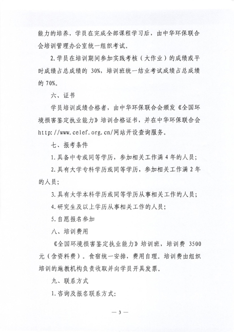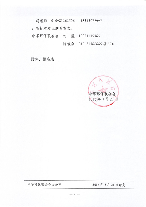 中华环保联合会关于举办《全国环境损害鉴定执业能力》2016年第四期岗位培训班的通知
