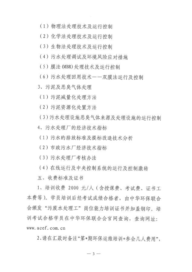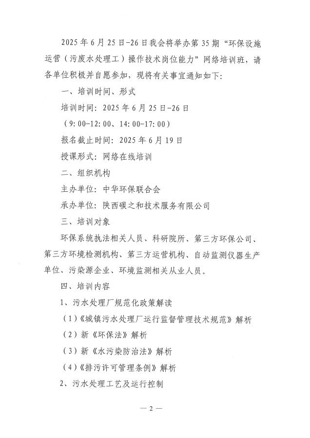 关于举办第35期“环保设施运营(污废水处理工)操作技术岗位能力”网络培训班的通知