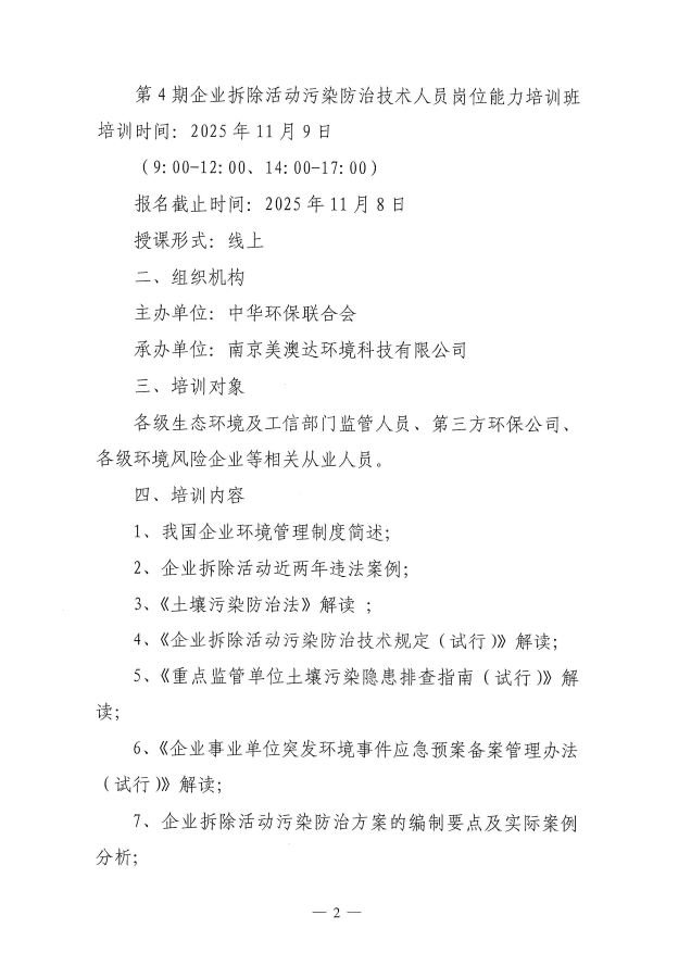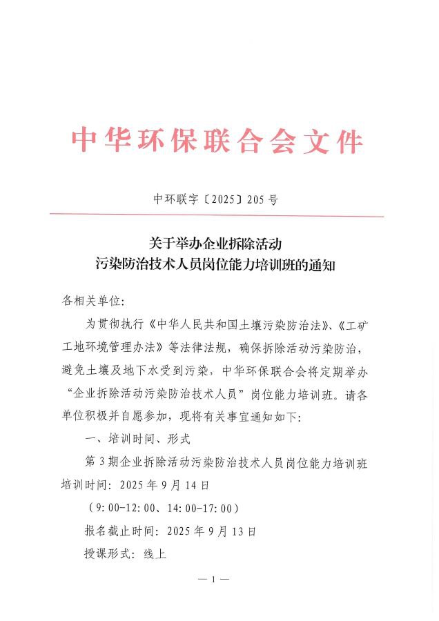 关于举办企业拆除活动污染防治技术人员岗位能力培训班的通知