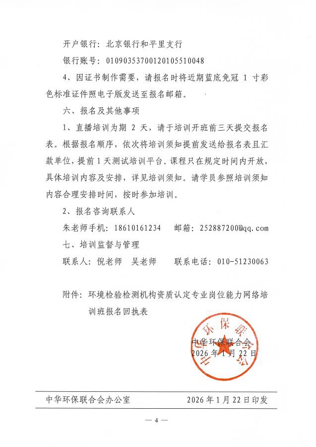 关于举办第26期“环境检验检测机构资质认定专业岗位能力”网络培训班的通知